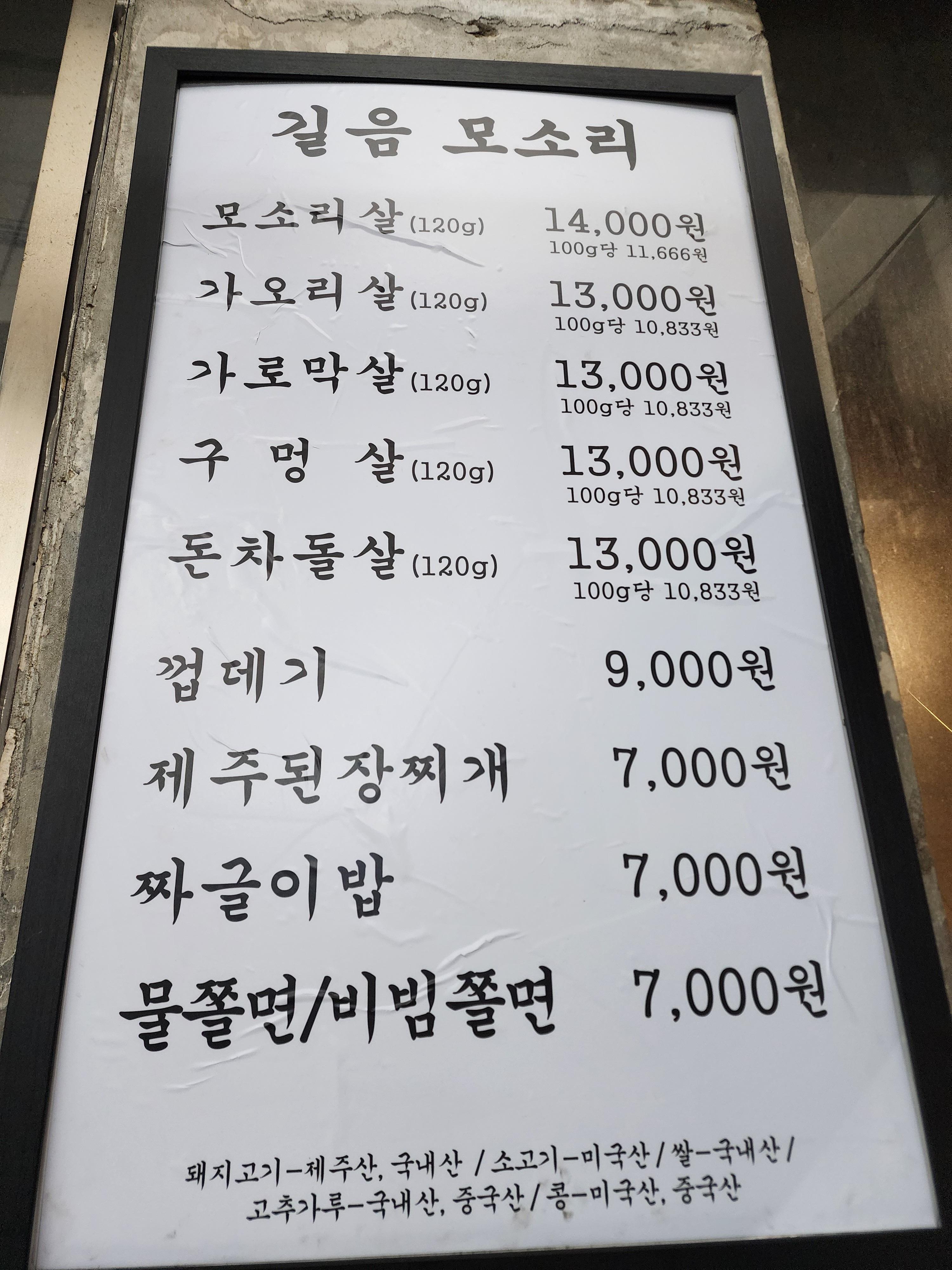 길음역 모소리의 돼지고기는 제주산, 국내산을 사용하고 있어요.