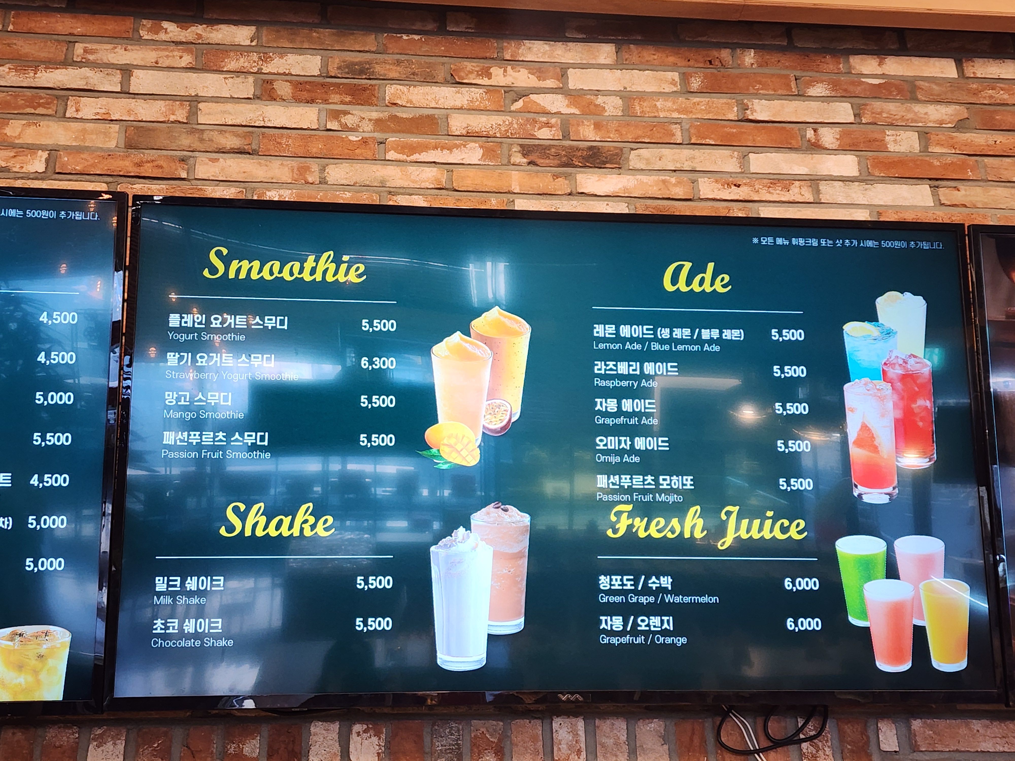 그 외에 스무디, 쉐이크, 에이드, 주스류까지
