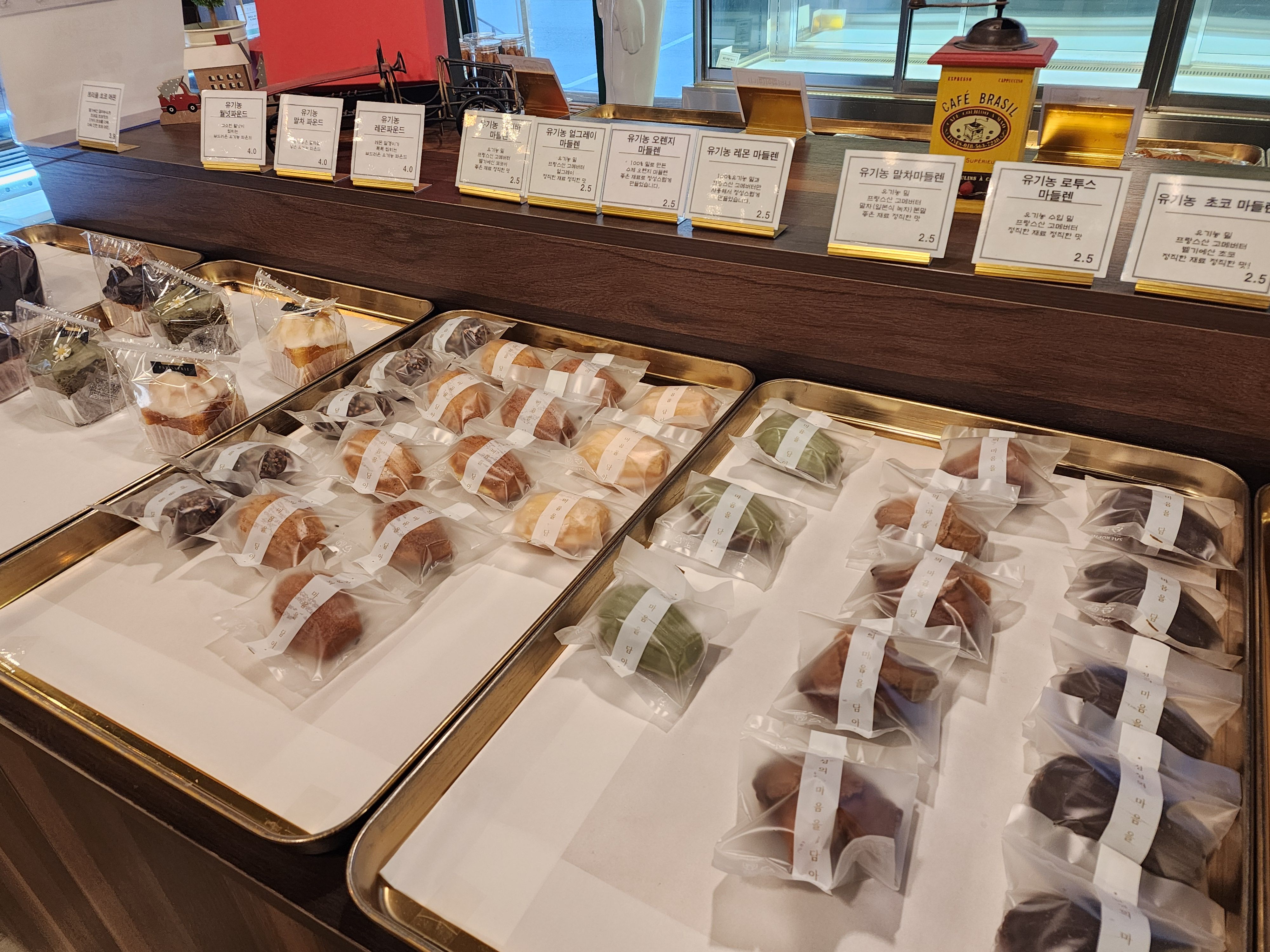 유기농 파운드, 마들렌이 종류가 많더라고요.