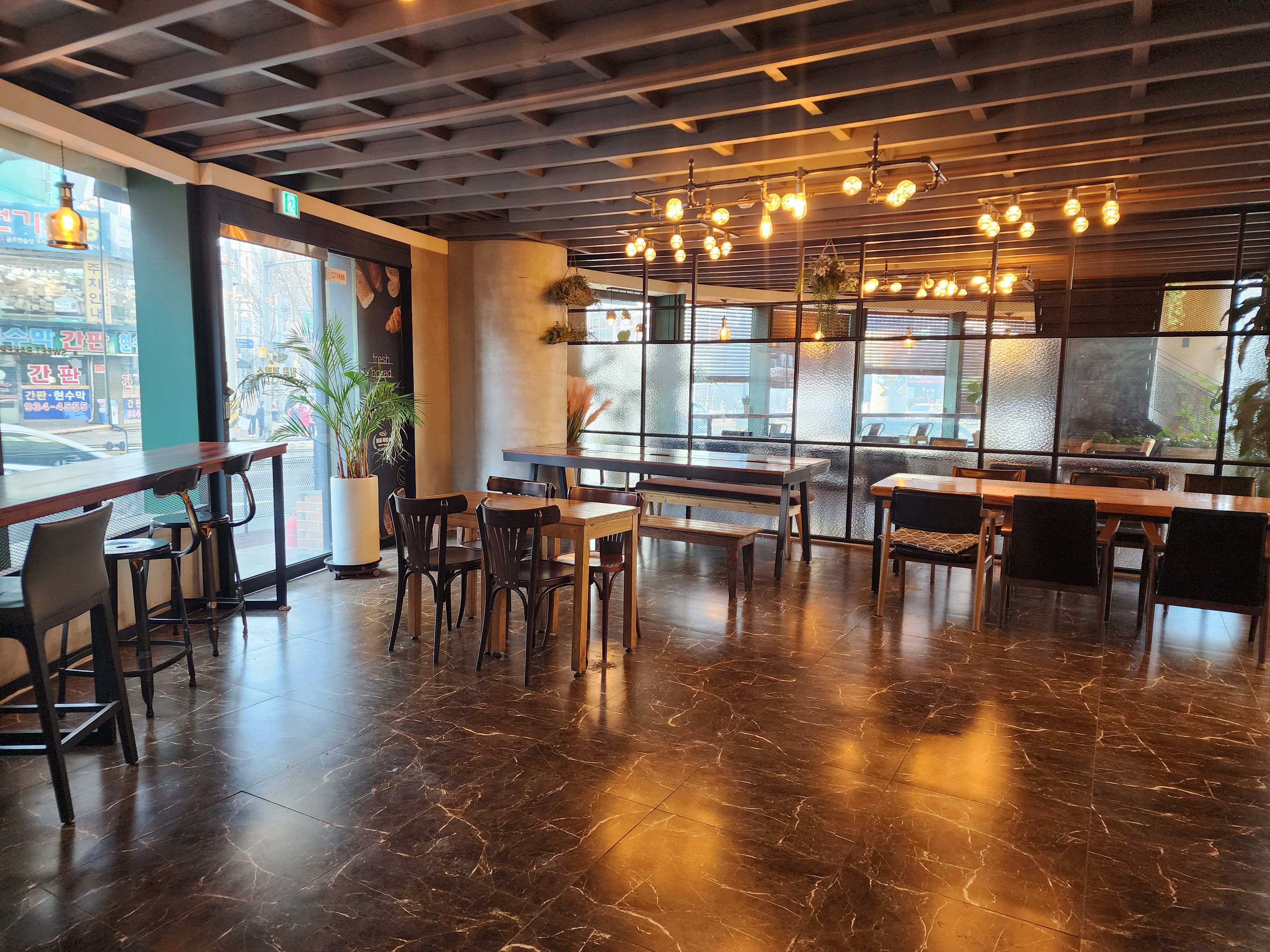 창가 테이블과 단체 테이블 등 모임 하기 좋을 것 같아요.
