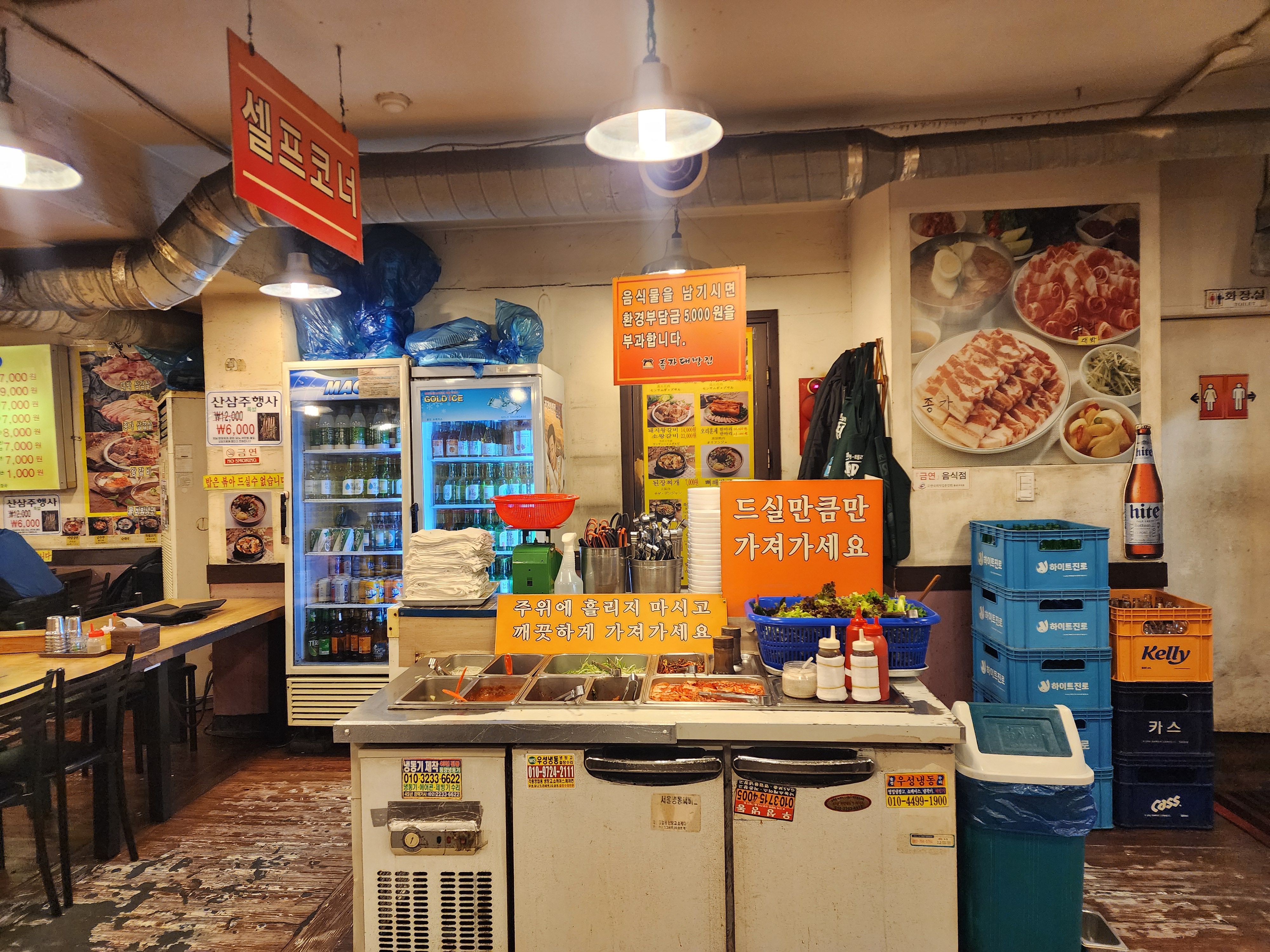 홀 중앙에는 밑반찬을 편하게 가져다 먹을 수 있도록