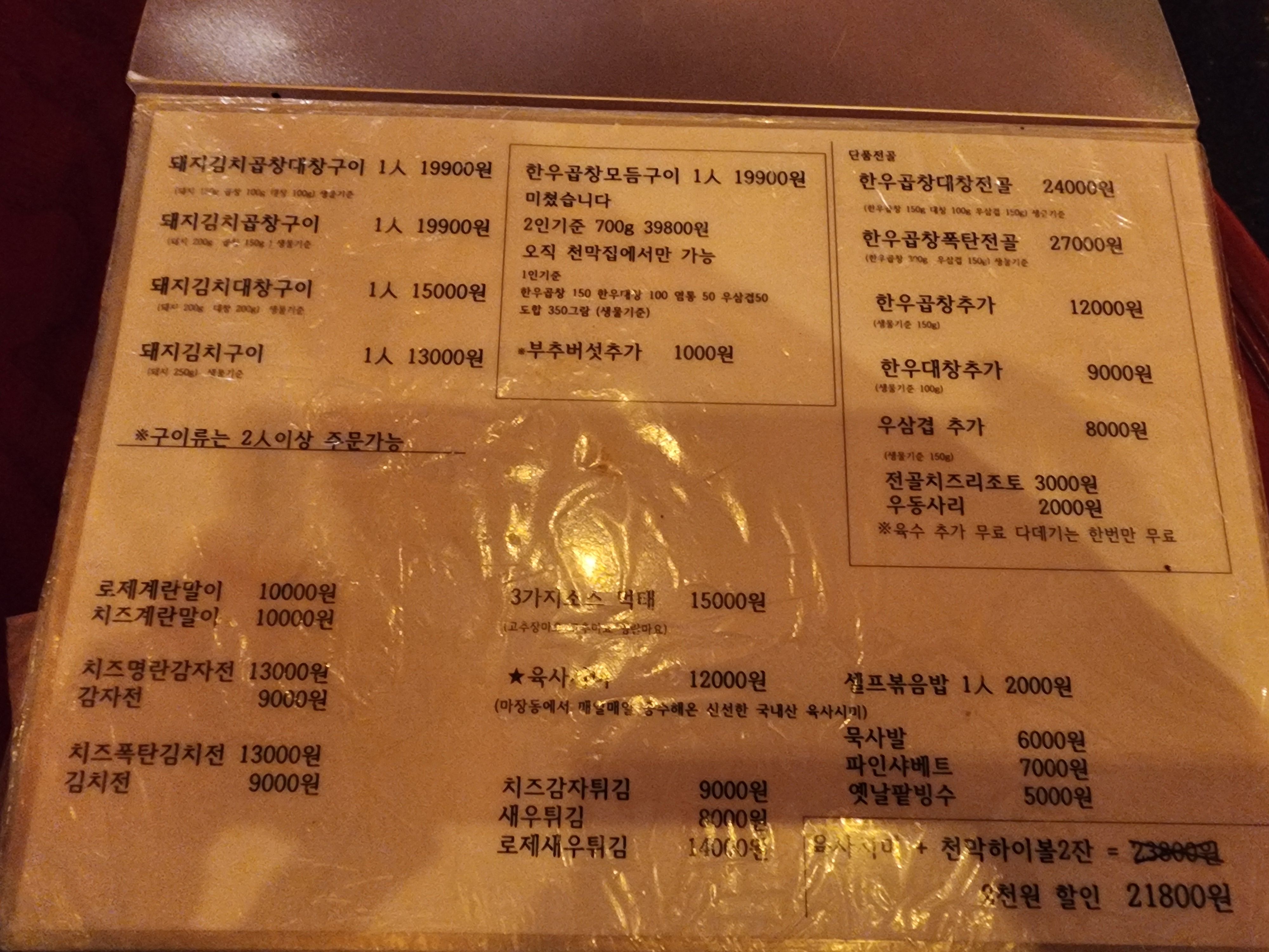 성신여대 천막집의 유명한 메뉴는 역시나 소곱창!