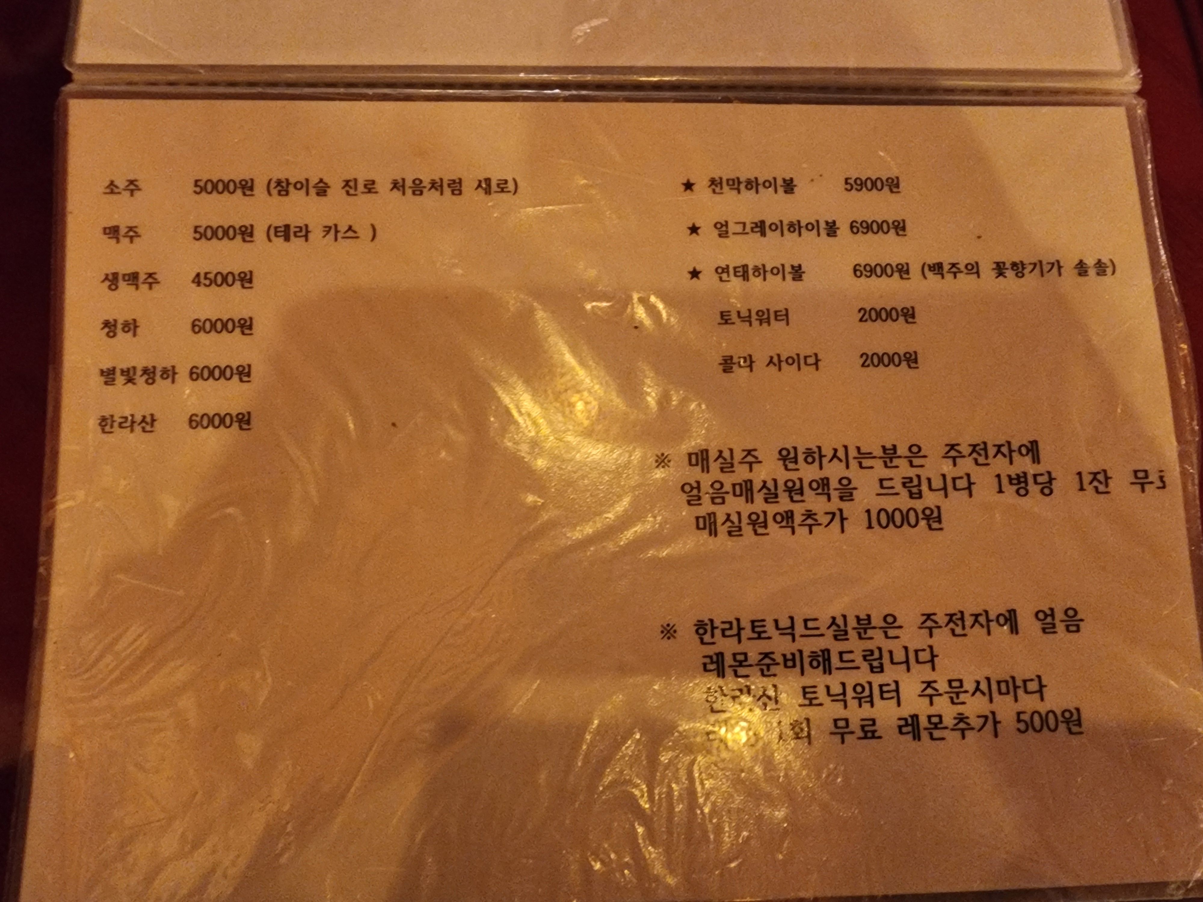 주류 메뉴판에 보니 매실원액 추가 주문해서