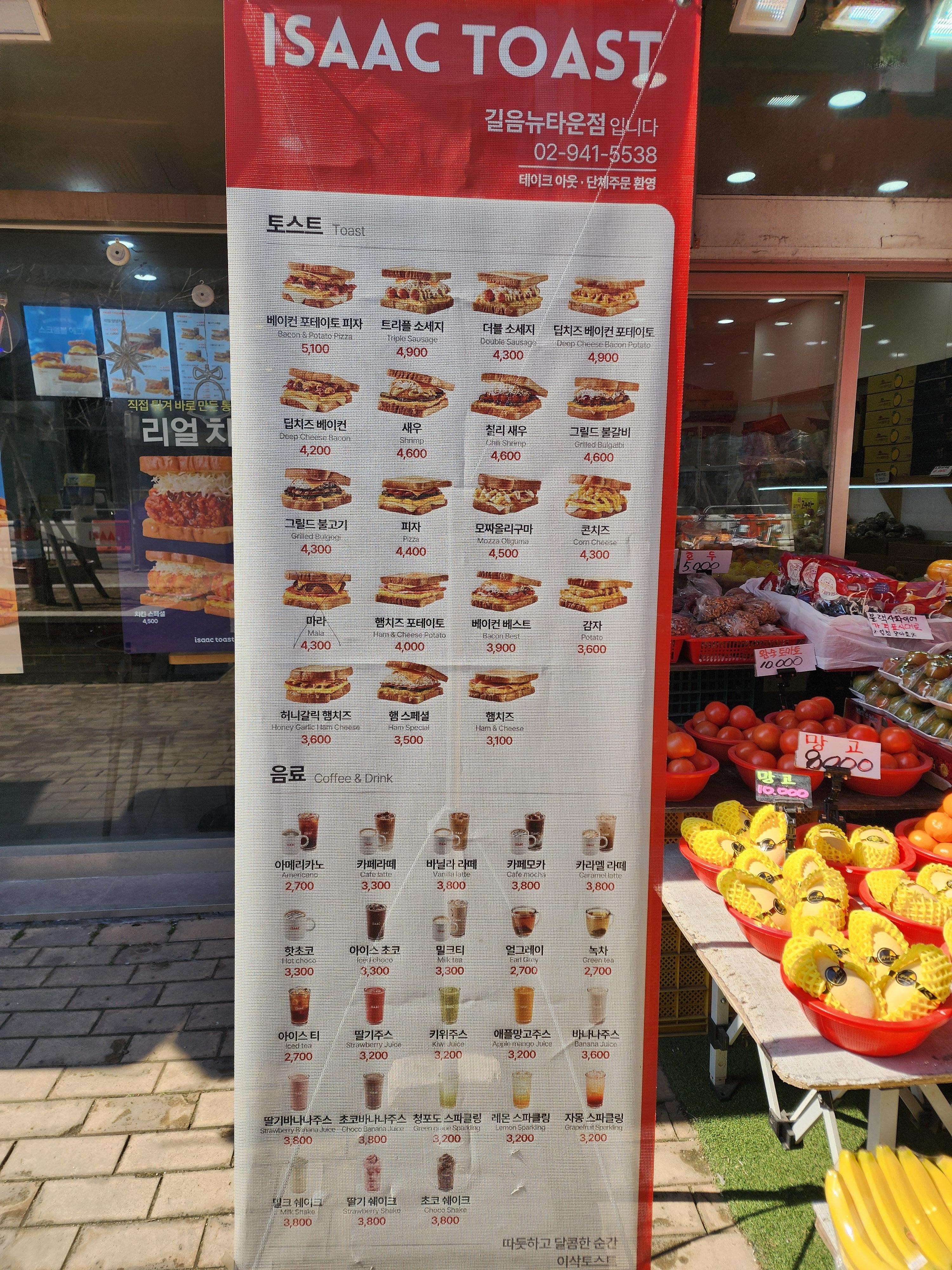 이삭토스트 길음뉴타운점은 과일가게와 에그드랍 사이에 있습니다.